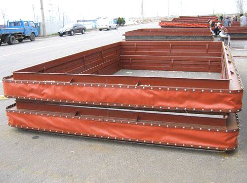 矩形膨胀节用以钢材,电力,石化,水泥等行业。可以根据用户要求选取不锈钢或碳钢制作u形或v形浪花喷嘴,内衬圆柱体,法兰一般选取碳素钢。